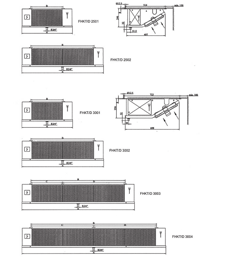 | FHKT 3001 07 7D | 300 | 1 | ~ 220 | 87/105 | 0.44/0.48 | 1970 | 9 | 2x570 | 1x570 | 1710 |